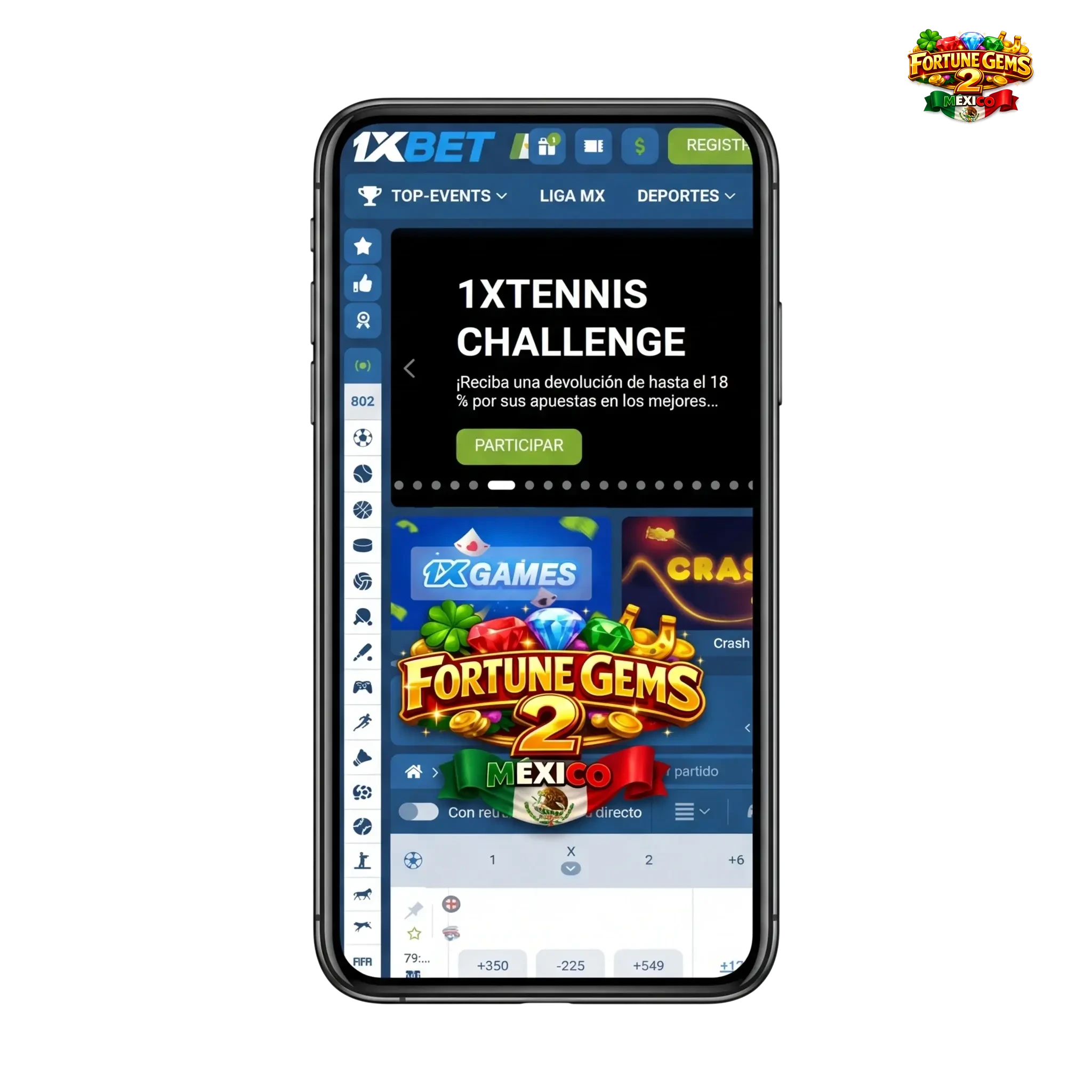 Ingresa el código promocional 1XBETMX al registrarte para obtener valor adicional en Fortune Gems 2. Durante el registro, escríbelo en el campo “Código promo”. Si ya tienes cuenta, aplícalo desde la sección “Mis bonos” dentro de la app de 1xbet.